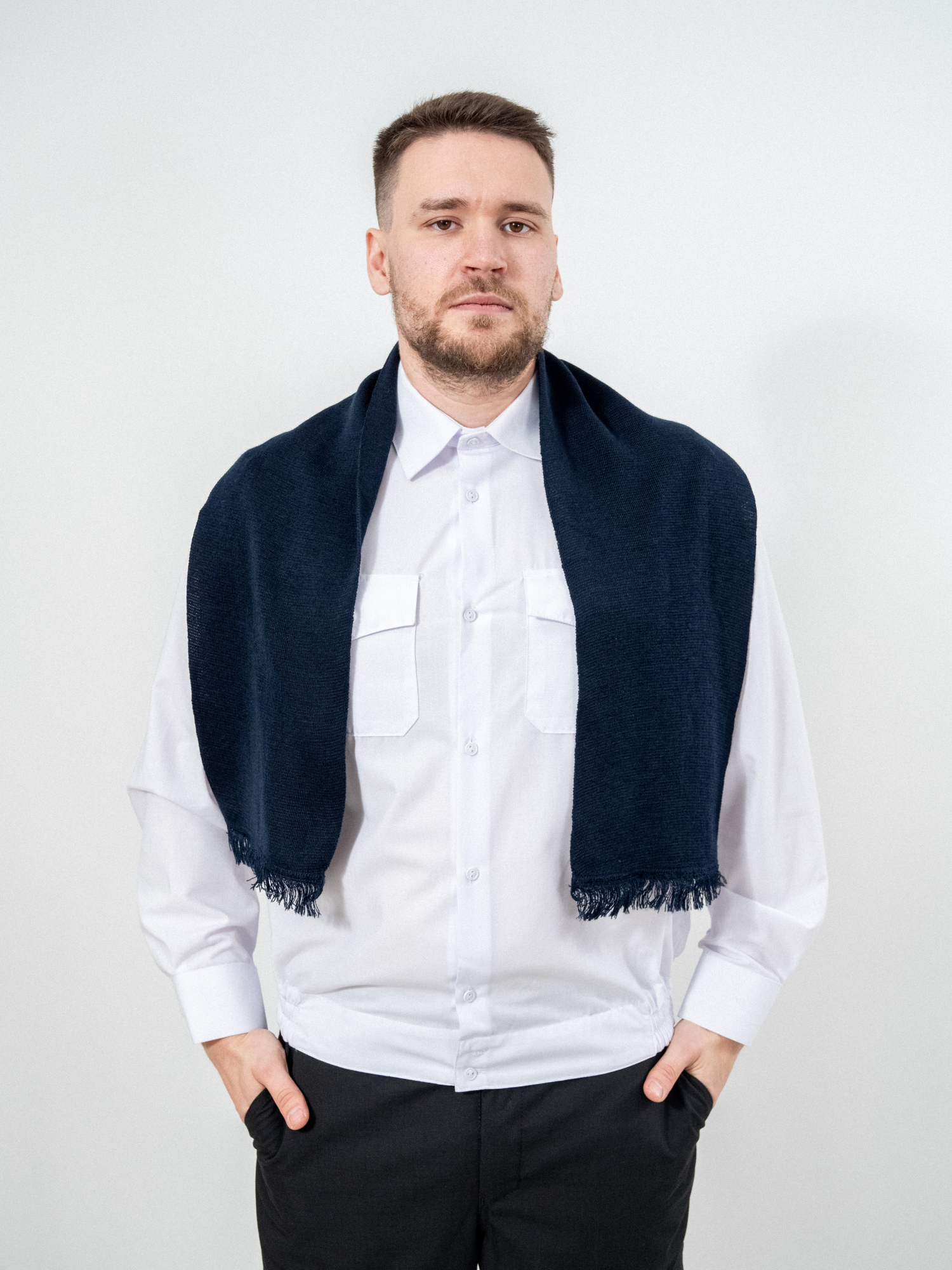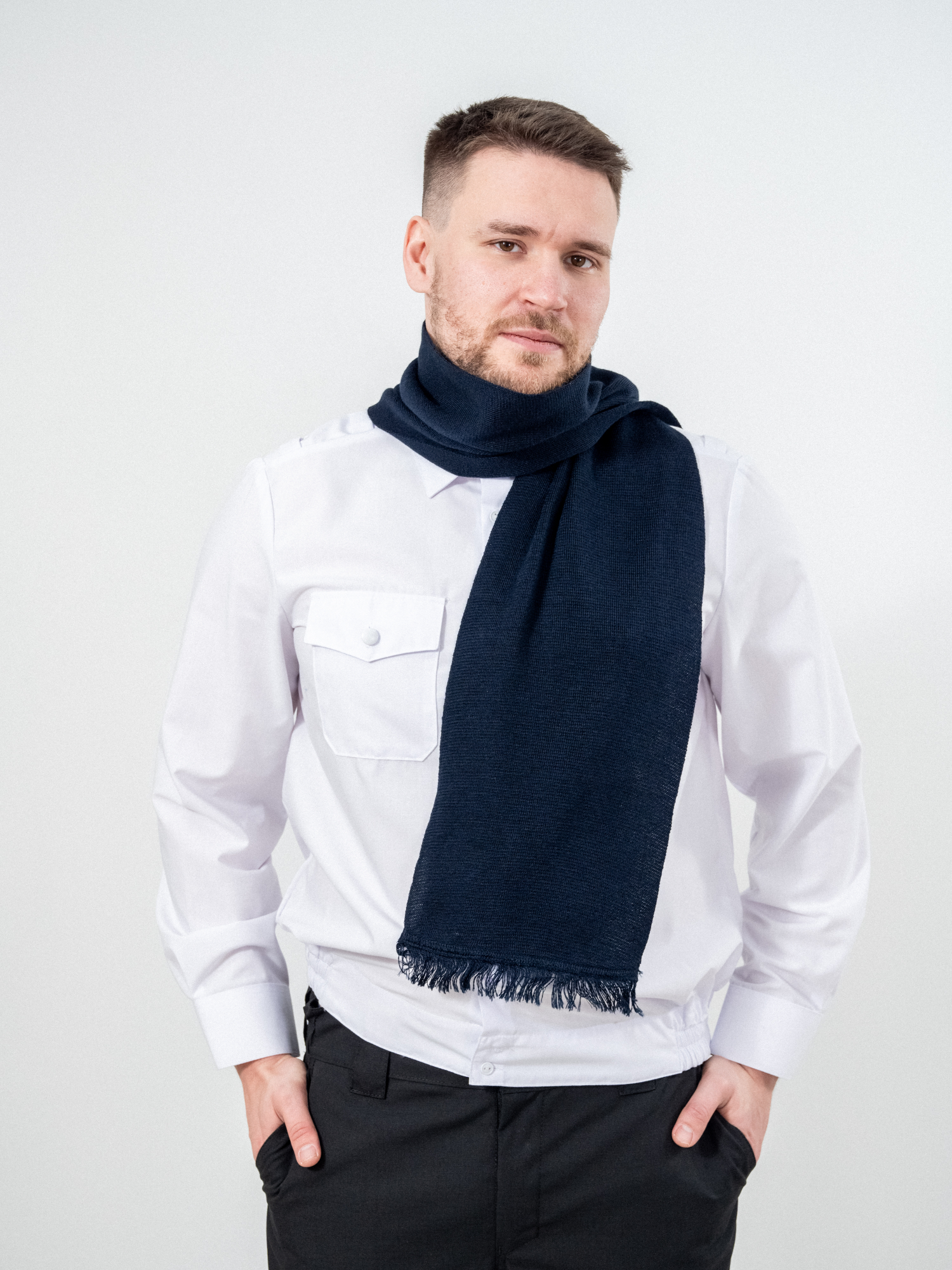 Шарф кашне мужской и женский для военнослужащих Армейский Уставной Армия России. Кашне используют при ношении форменного обмундирования, в холодное время года. Гладкий шарф с короткой бахромой по краям и эластичной вязкой.120*20 размеры шарфа. Платки форменные для Полиции МВД, ВМФ, МЧС, СВЧ.