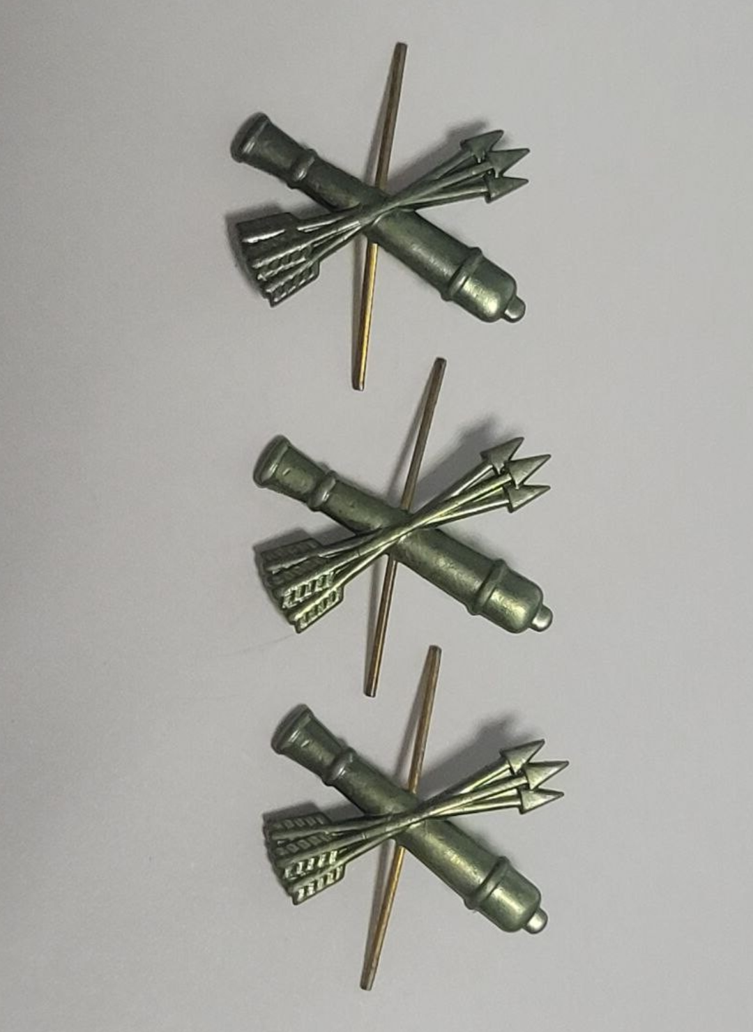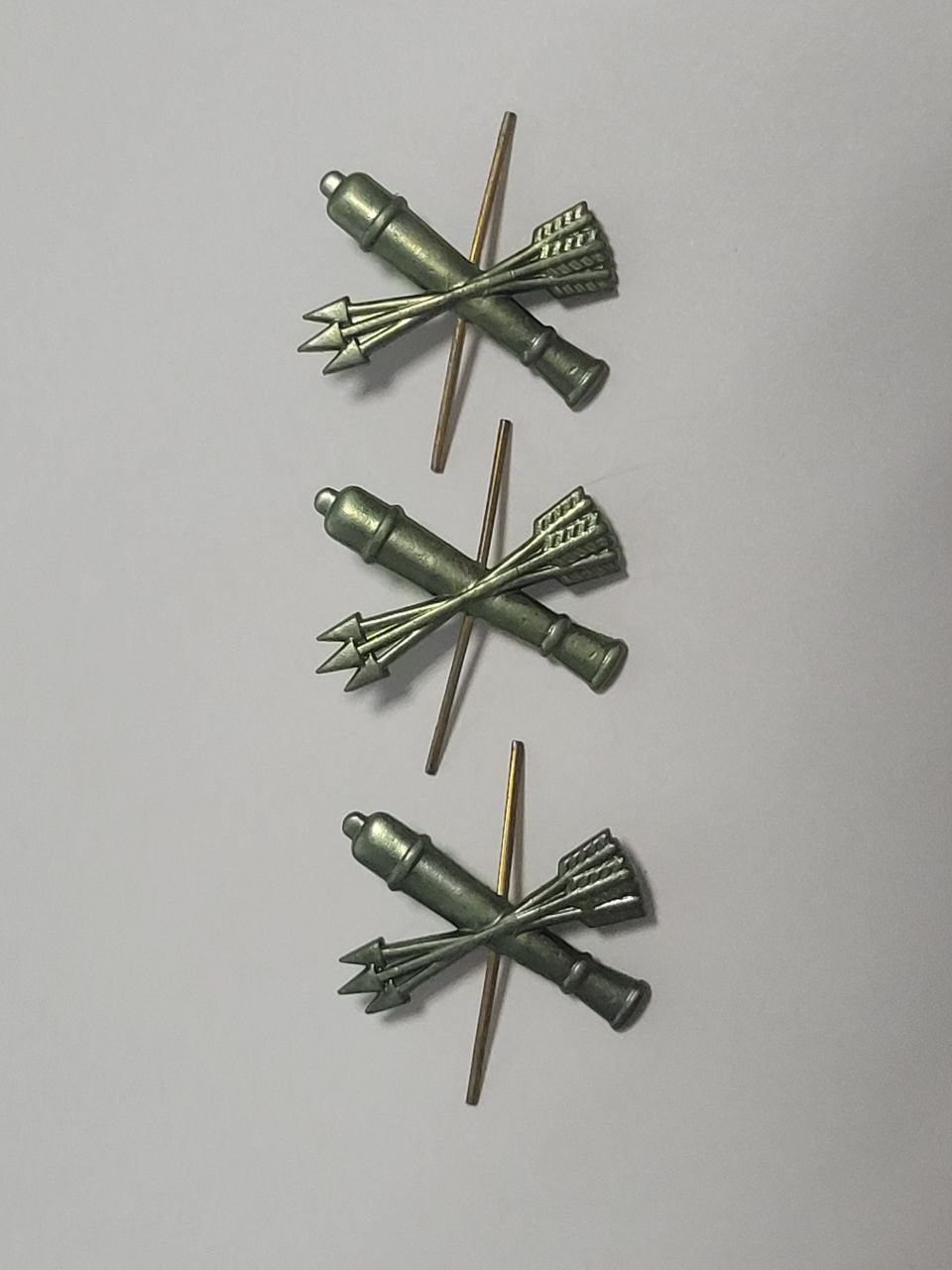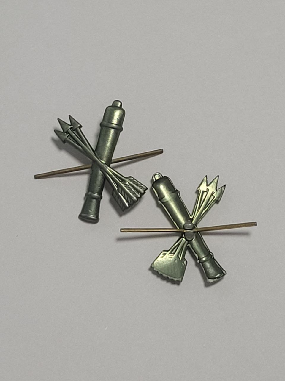 Знак  в виде скрещенных трех стрел и арт. пушкой Крепление - усики.