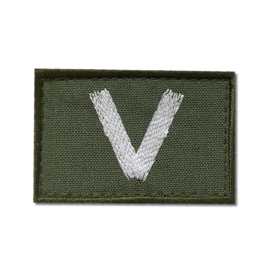 Шеврон V оливковый кант (кисть) на липучке, белый 58х39 мм - интернет магазин Полигон