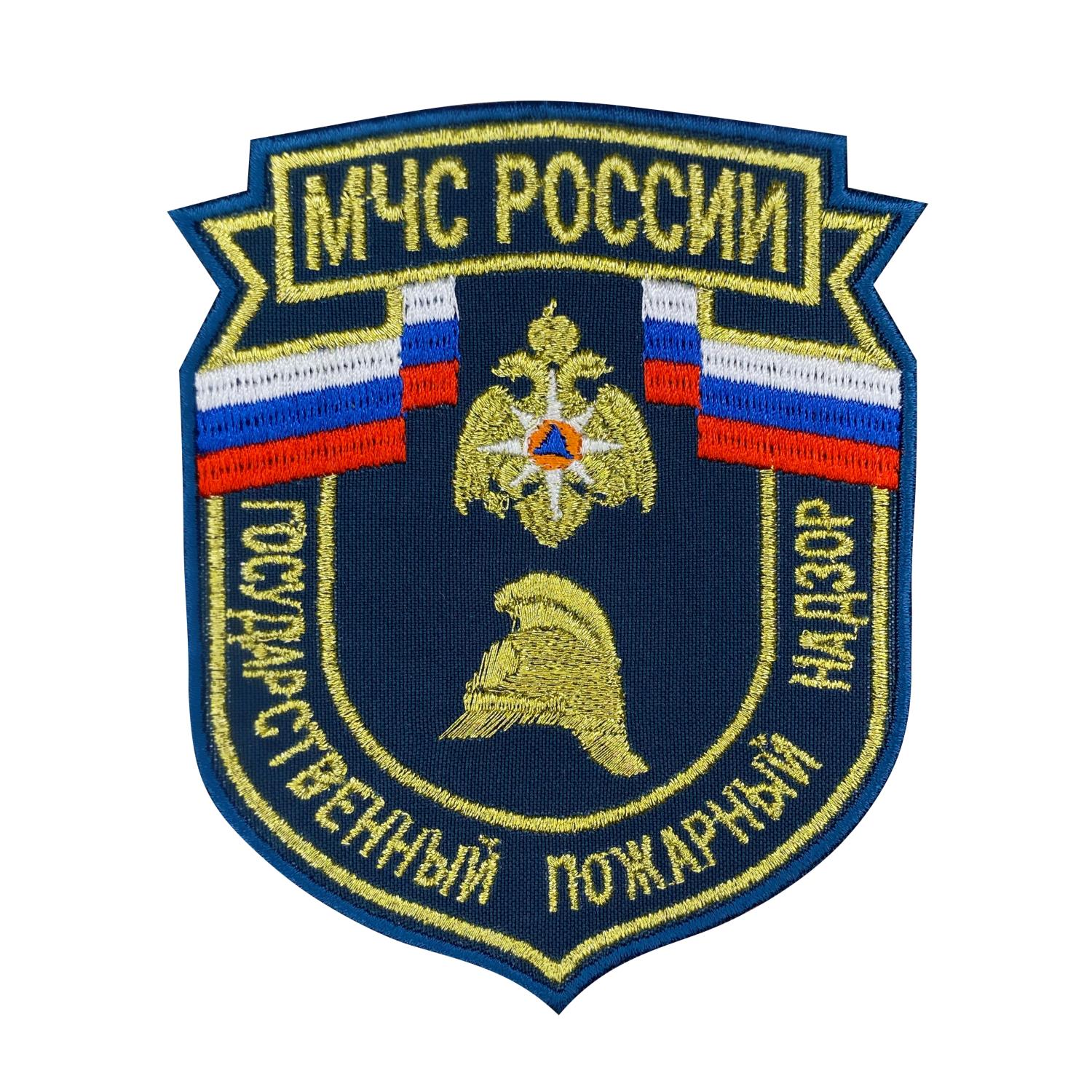 Шеврон вышитый 2022 г МЧС России Государственный пожарный надзор, золотой, металл - интернет магазин Полигон