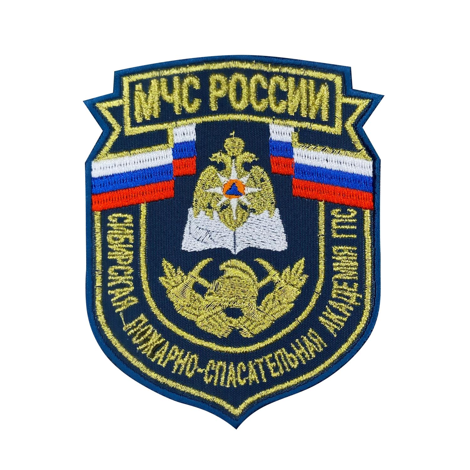 Шеврон вышитый 2022 г МЧС Сиб. пожарно-спасательная академия ГПС, золотой, металл - интернет магазин Полигон