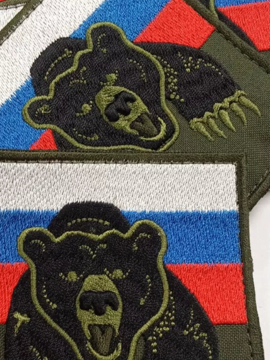 Шеврон вышитый Флаг РФ с медведем на липучке - интернет магазин Полигон