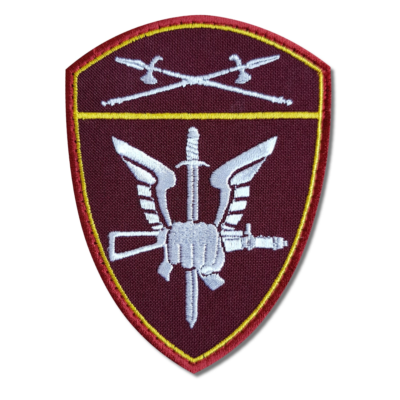 Шеврон вышитый на липучке Росгвардия Уральский Округ Спецподразделения, бордовый, белый, желтый - интернет магазин Полигон