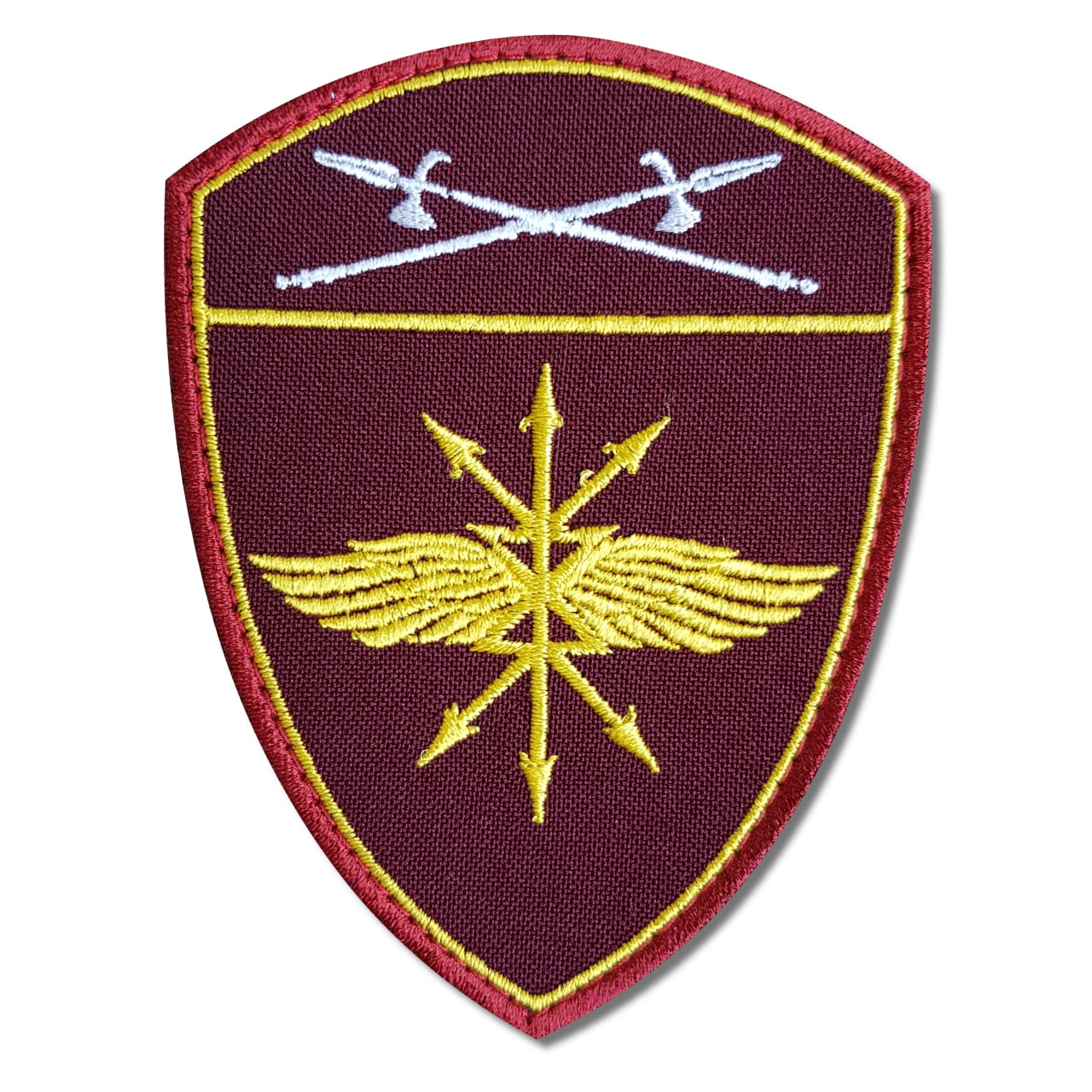 Шеврон вышитый на липучке Росгвардия Уральский Округ войска Связи, бордовый, белый, желтый - интернет магазин Полигон