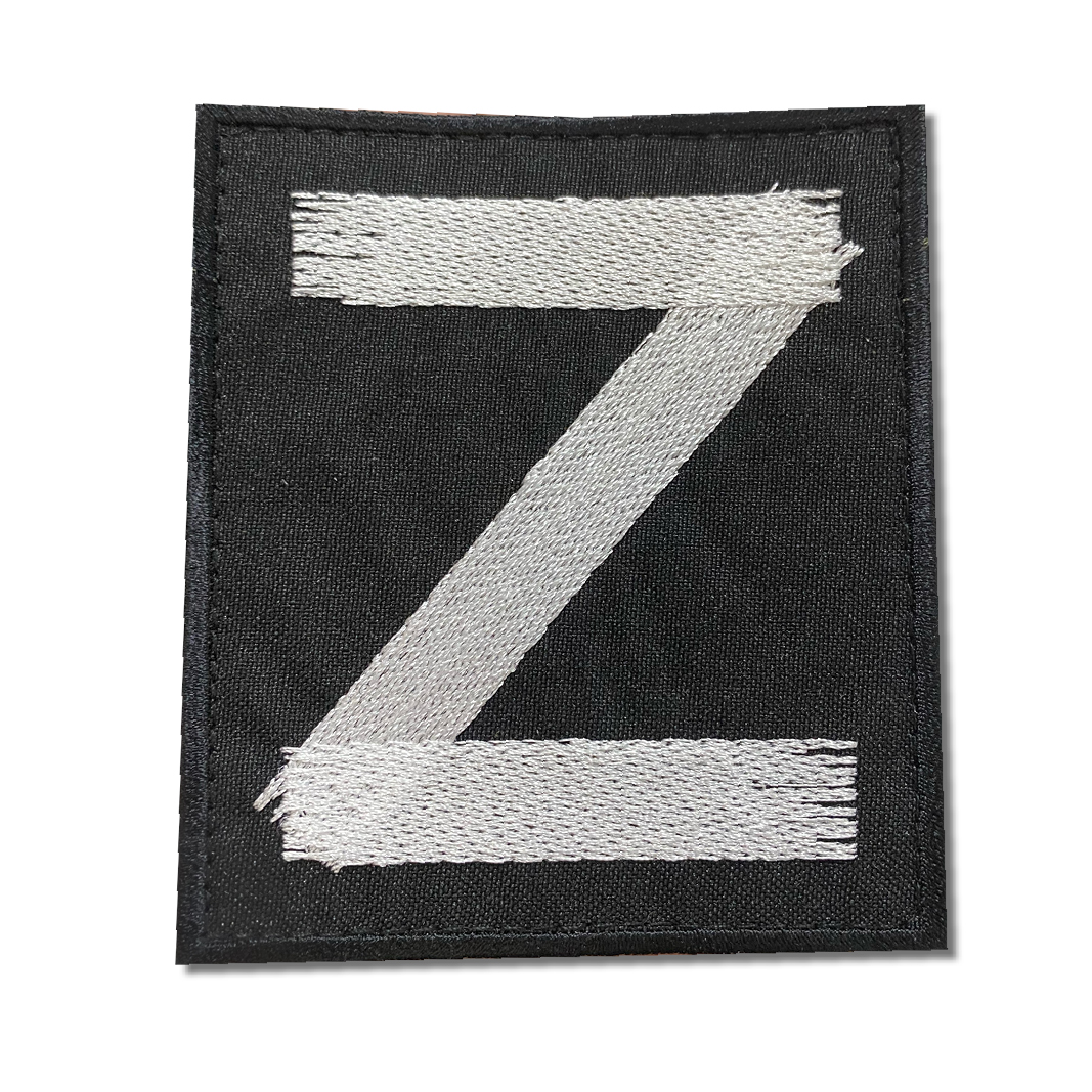 Шеврон Z черный кант (кисть) на липучке, белый 85х95 мм