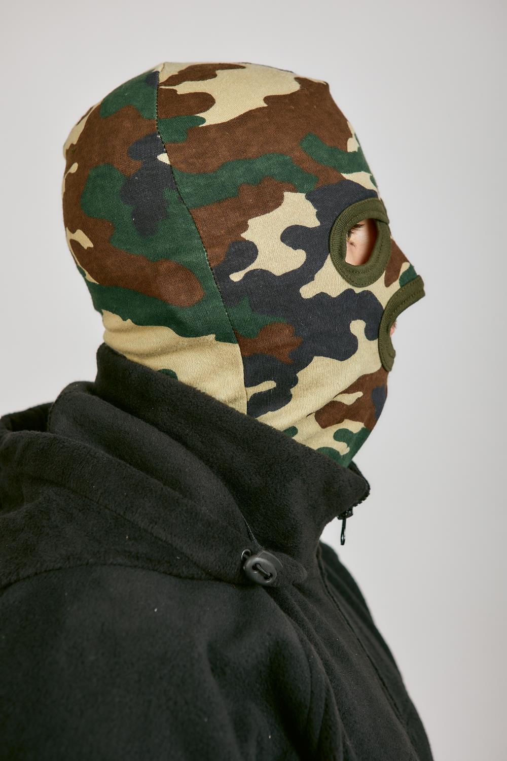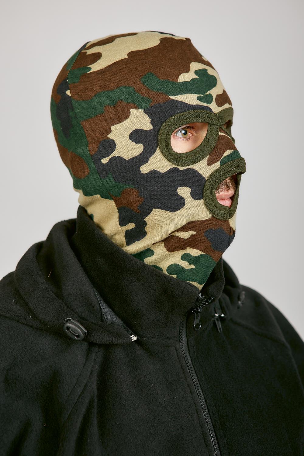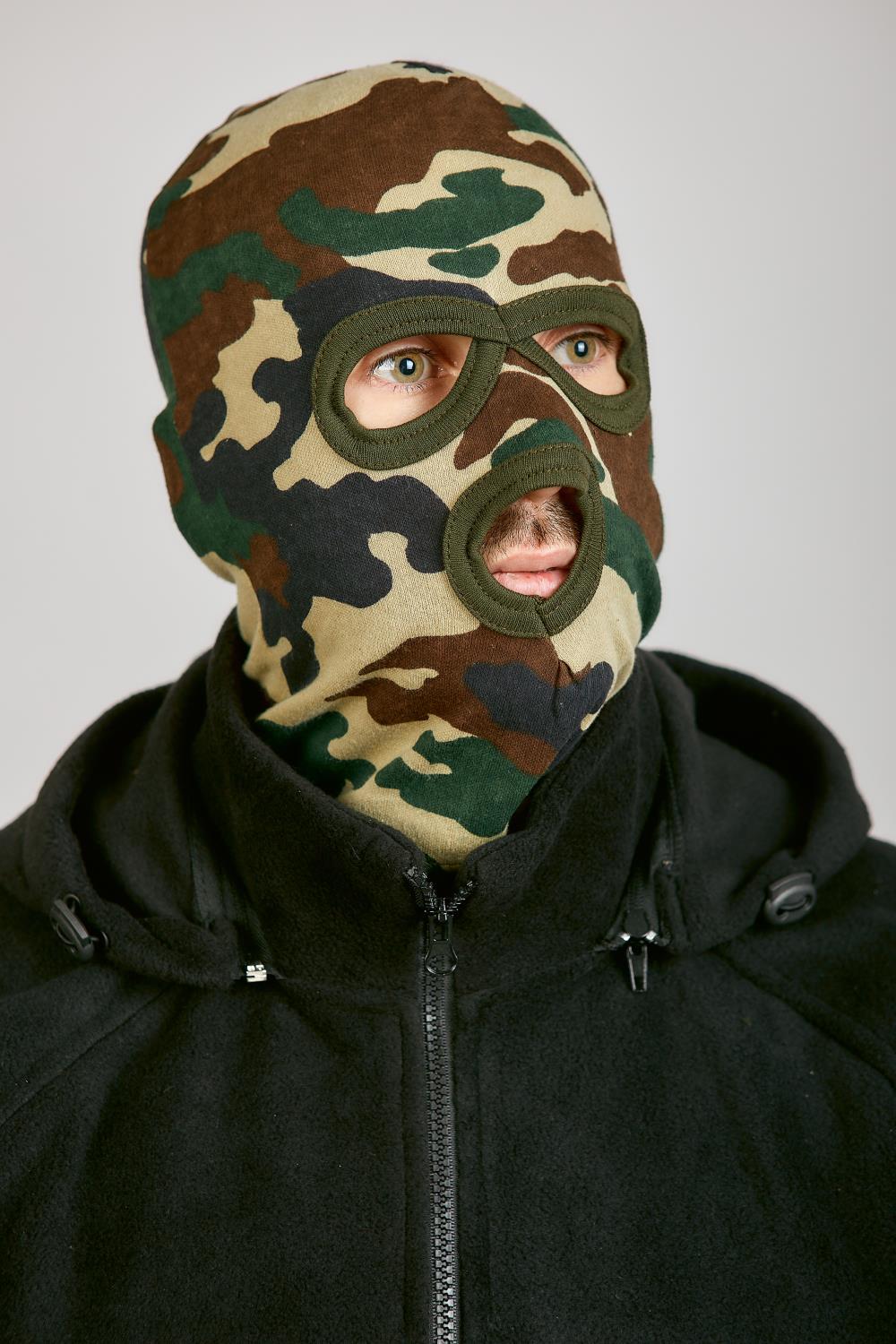Маска х/б, отверстия для глаз и рта. Балаклава в трех разных цветах, камуфляжная зеленая, зеленая цифра и черный. Материал: интерлок. Гладкая и шелковистая, приятная на ощупь, хорошо тянется. Не вызывает аллергии. Долговечная, хорошо пропускает воздух. 100% комфорта.
