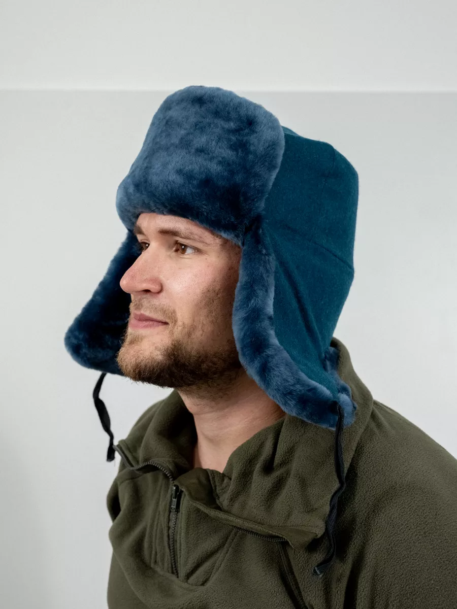 Шапка-ушанка из (сукно морская волна) МЧС, синий, овчина - интернет магазин Полигон