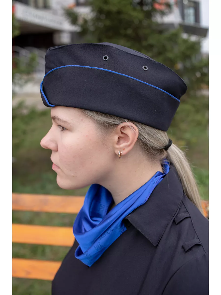Отличается прочностью и износостойкостью. Не создает парникового эффекта -имеет высокую степень воздухопроницаемости. Не деформируется при стирках, почти не тянется. Платье полуприлегающего силуэта темно-синего цвета с V-образным вырезом. Ткань высокого качества позволит носить платье ежедневно, без потерь в эстетике и без деформации ткани. Спинка со швом посередине, заканчивающимся шлицей и талиевыми вытачками. Для крепления съемных погон в области плечевых швов- две шлевки и одна обметанная петля. Воротник отложной со стойкой. Пояс съемный, застегивающийся на пластиковую пряжку. В боковых швах-шлевки для пояса.