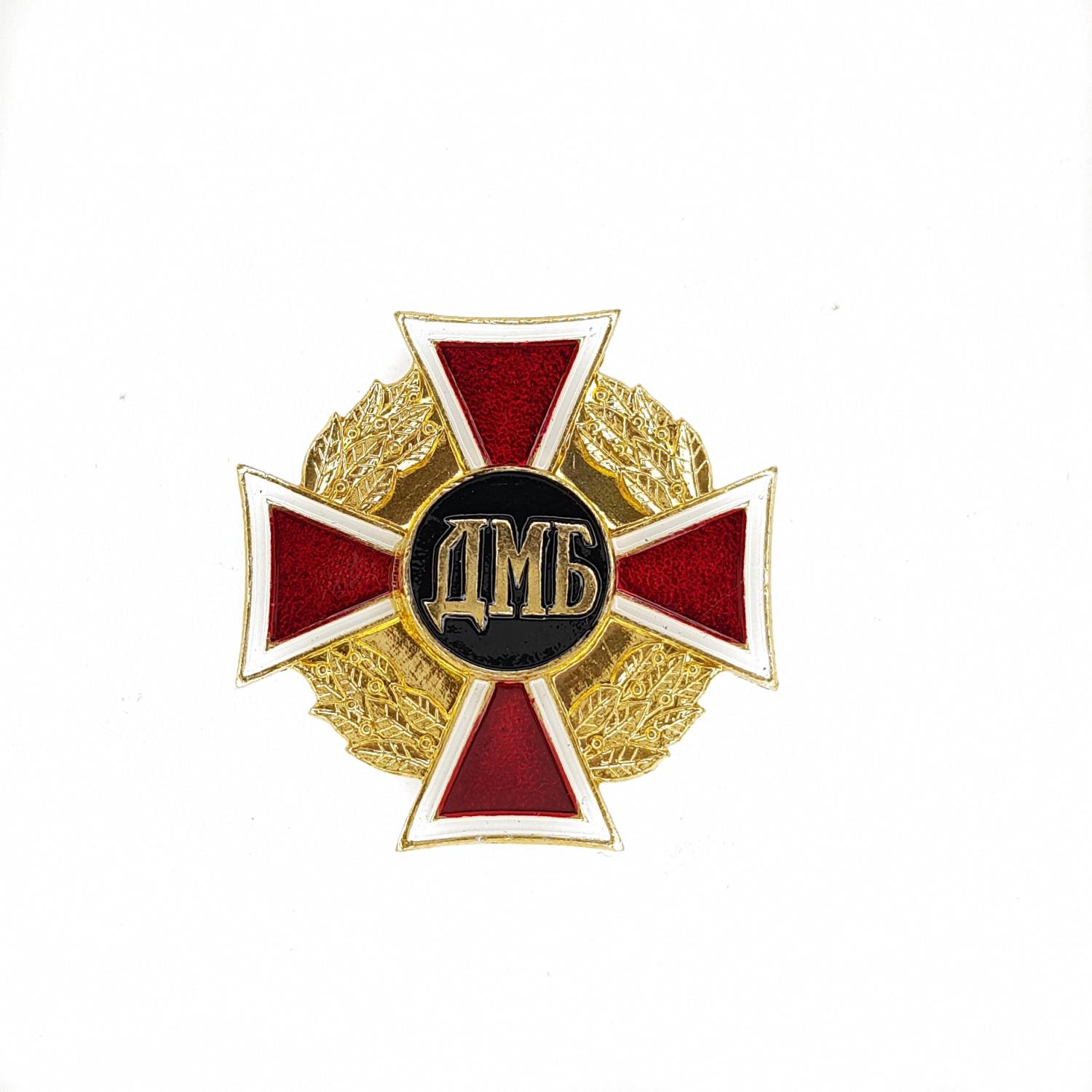 Значок (красный крест в венке) ДМБ, золотой, красный, металл