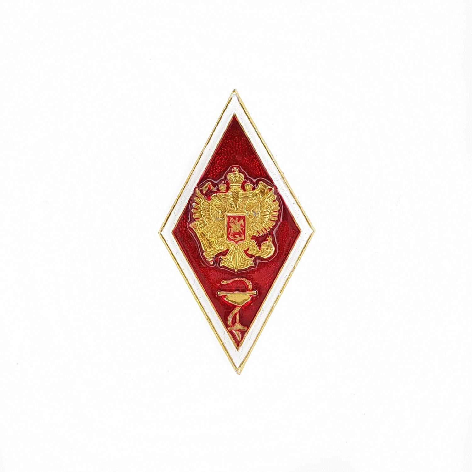 Значок Ромб Высшее медицинское образование, золотой, красный, металл - интернет магазин Полигон