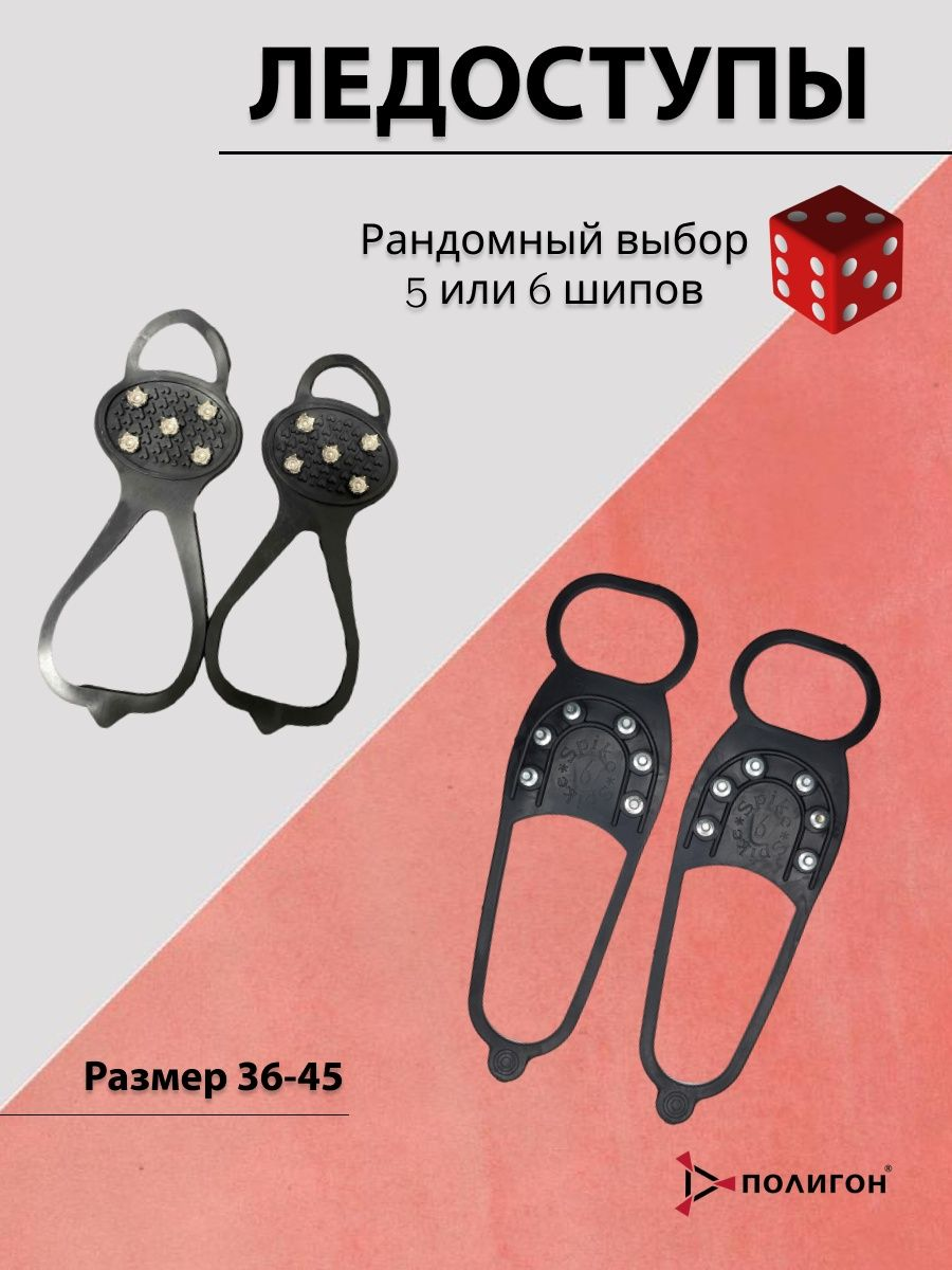 Самые распространенные ледоходы - это насадка на обувь ледоступы с шипами. Изготовлены из эластичной высококачественной морозостойкой резины, удобная резиновая скобка на язычке. Самое оптимальное число шипов 5 или 6. Ледоступы предназначены для использования в целях предотвращения падений и травм в зимний период на скользкой поверхности. Крепятся очень просто при помощи малой и большой резиновых петель, которые надеваются на носок и на пятку обуви соответственно. Благодаря высокому качеству резины подходят на любую обувь с 36 по 45 размер. Сидят плотно, надежно, не растягиваются при использовании, не спадают, не портят обувь и не рвутся.