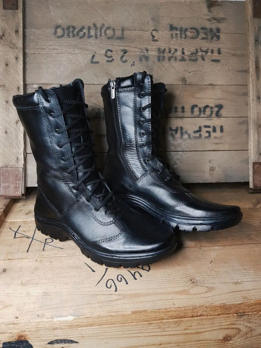 Ботинки зимние, уставные. Черные мужские с высоким берцем, ботинки выполнены из прочной высококачественной хромовой кожи, толщиной 1,4-1,6 мм. Внутренняя подкладка из натурального меха (овчина), обеспечивает тепло и поддерживает комфортную температуру. Температура берц рассчитана до -30°C. Технологичная подошва из ТЭП, обладает повышенной износостойкостью и отличными термоизоляционными свойствами. Упругая и прочная, с высоким сопротивлением к скольжению подошва, обеспечивает пользователю подвижность стопы, устойчивость и баланс при преодолении препятствий. Метод крепления подошвы-клеепрошивной, cупинатор - металлический. Подносок и задник дополнены термопластическими вставками для усиления защитных свойств. Тактическая обувь с глухим клапаном препятствует попаданию внутрь ботинка посторонних предметов, грязи, влаги. Для удобства, с внутренней стороны ботинка, имеется молния. Профессиональная тактическая обувь, предназначена для обеспечения комфорта, при условиях жесткой эксплуатации. Трекинговые ботинки не только защищают ноги от погодных условий, но и предохраняют от травм и сезонного дискомфорта. Могут использоваться в повседневных, военных, операционных и полевых условиях. Мужские уставные ботинки, подходят для работников охранных структур, сотрудников силовых структур, Росгвардии, Полиции (МВД, ДПС), патрульно-постовых служб, солдат Российской Армии, военных. Берцы армейские подойдут работникам складских помещений, на строительных площадках, профессиональным туристам и всем, кто увлекается активными видами отдыха на природе. Удобный и практичный элемент экипировки для мотоспорта, страйкбола и пейнтбола. Берцы удобны на рыбалке и охоте, в повседневной носке как мужские ботинки или элемент спецэкипировки. Широкий размерный ряд с 37 по 45 размер подразумевает ношение женщинами и подростками.