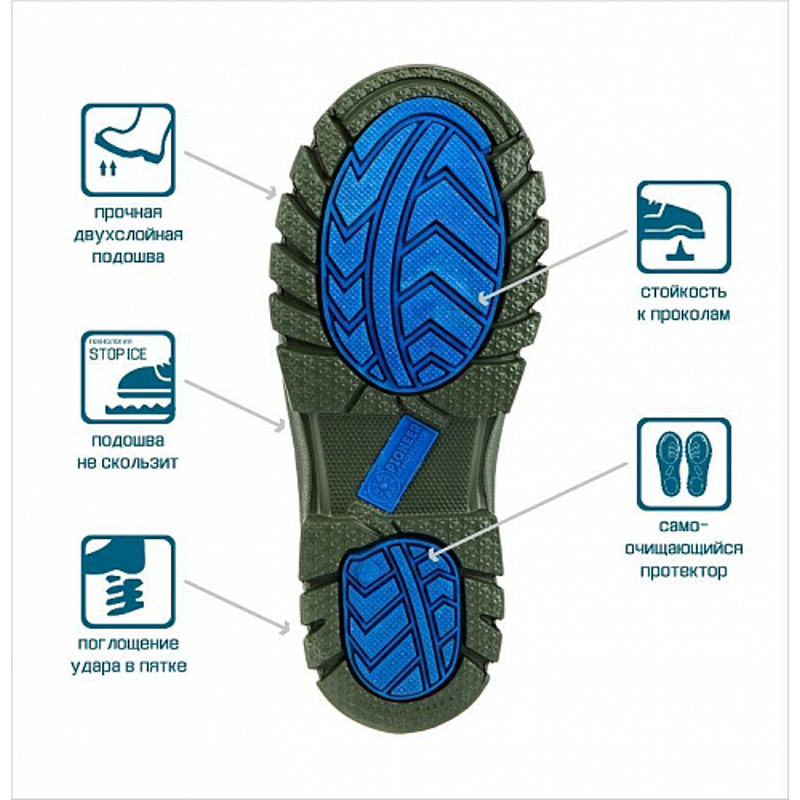 Конструкция верха изготавливается с использованием морозостойкого материала ЭВА, который обладает хорошими теплоизоляционными свойствами.