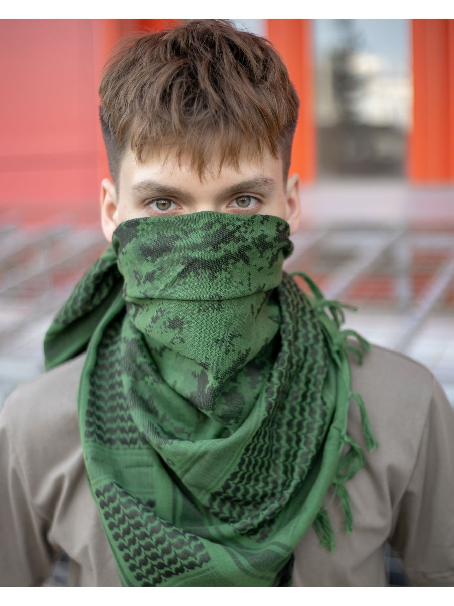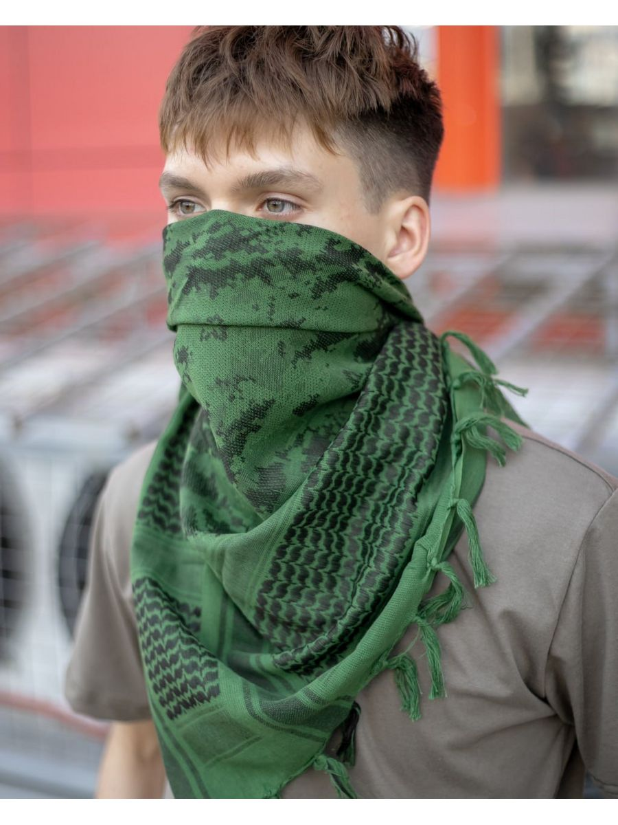 Мужская арафатка это широкий платок, размер 110х110 см. Отличная защита в жарких странах от парящего солнца, песка и песчаных бурь, насекомых, высокой температуры. Платок-арафатка повседневный аксессуар в арабских странах, военных, куфия также стильная деталь мужского образа. Изюминка этого мужского головного убора в искусном переплетении контрастных по цвету нитей. Платок подойдет всем, он универсален: унисекс, для мужчин и женщин, подростков и детей, его очень полюбила молодежь. Восточный мужской шарф легкий, дышащий материал ткань 100% хлопок, цвет олива (оливковый).