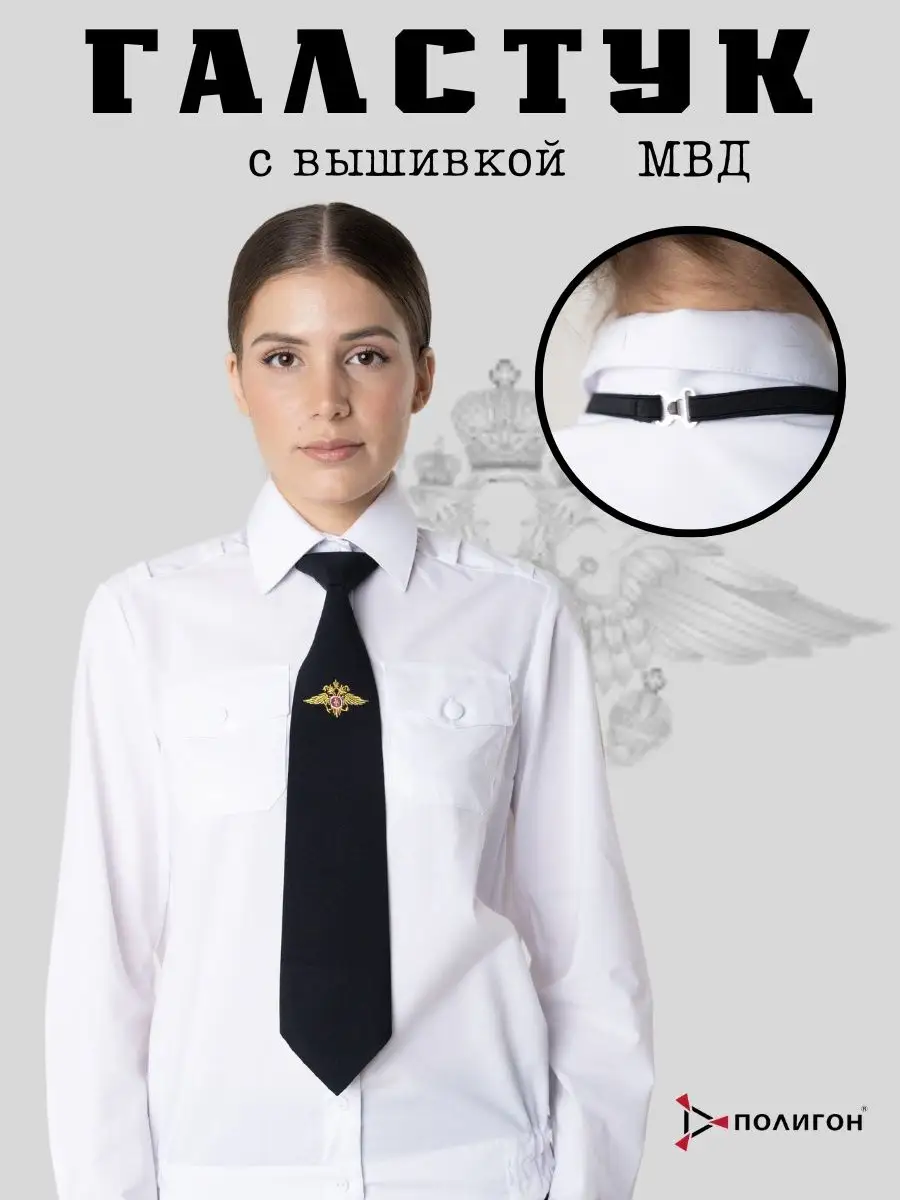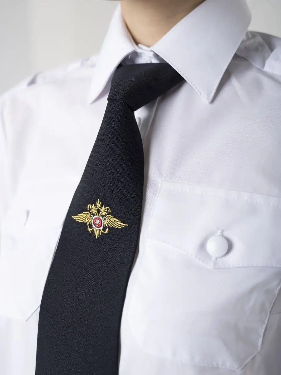 Галстук-регат с вышивкой с орлом Полиция МВД, темно-синий, габардин - интернет магазин Полигон