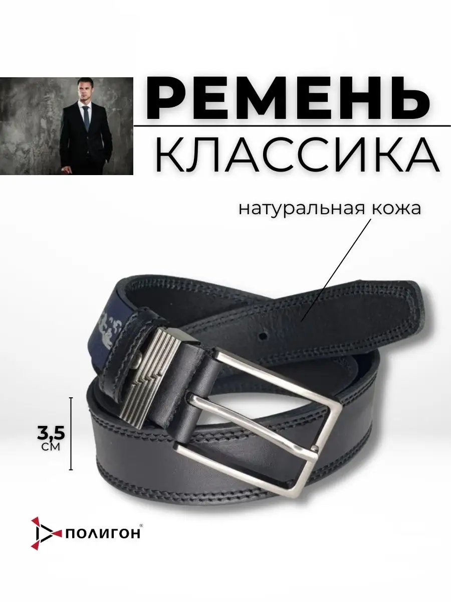Ремень КЛАССИЧЕСКИЙ кожаный 35 мм., черный - интернет магазин Полигон