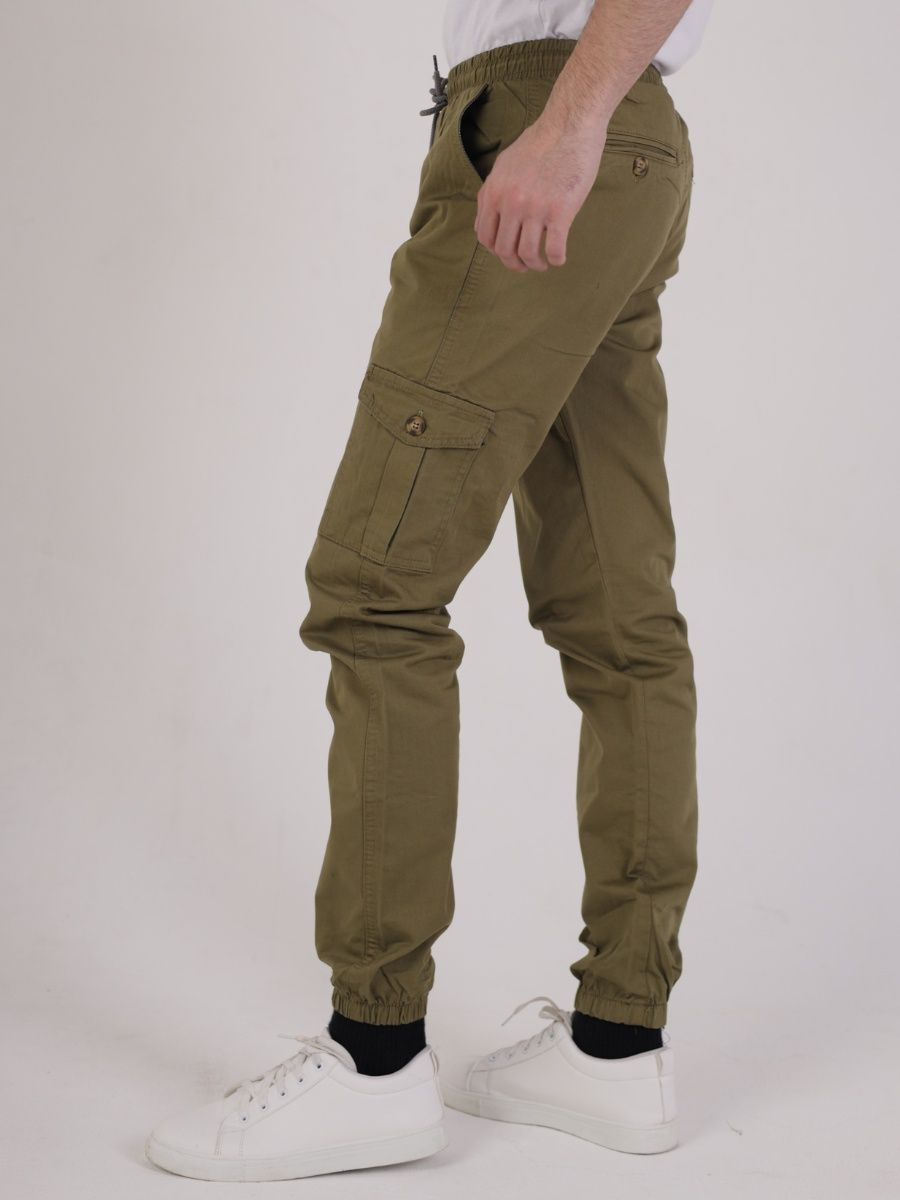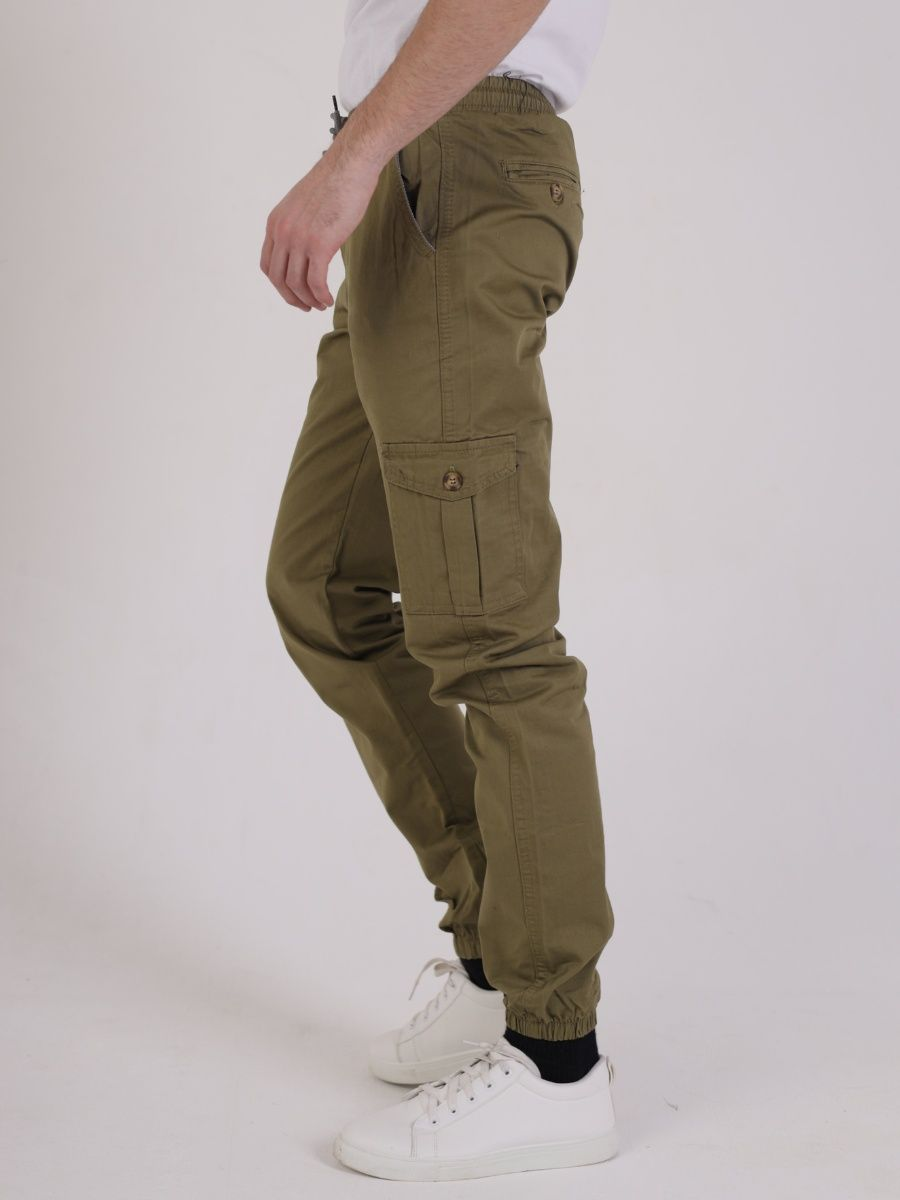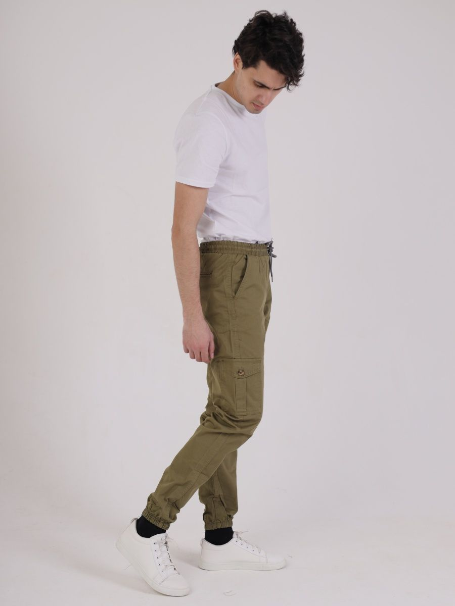 Брюки джоггеры мужские представлены в цвете олива. Джоггеры удачная модель объединившая спортивный стиль с городским. Штаны стильно смотрятся и хорошо сочетаются с футболками, куртками, рубашками. Отлично вписываются у каждого мужчины, женщины, подростка в гардеробе. Материал джоггеров состоит из 97% хлопка, 3% полиэстер. Для различных аксессуаров предусмотрено 6 карманов: 2 прорезных, 2 накладных на бедрах, 2 накладных задних кармана. Все карманы глубокие и функциональные и ими удобно пользоваться. Отличительная черта этих спортивных штанов является резинка на талии, а также манжеты на щиколотках в виде резинки. Благодаря резинкам при необходимости брюки можно легко поднять. Брюки удобно носить с высокими берцами, кроссовками, мокасинами. Коллекцию карго джогерров весна-лето можно увидеть не только на стадионах и в спорт залах, но и на улицах и даже в офисах.
