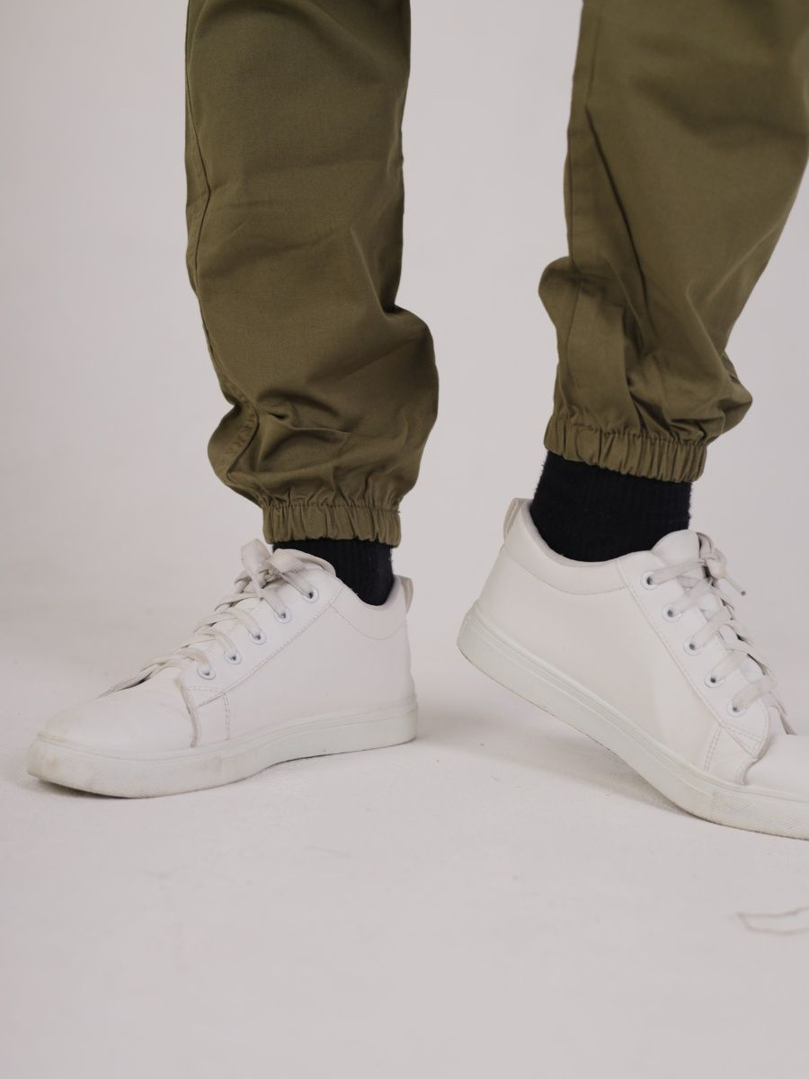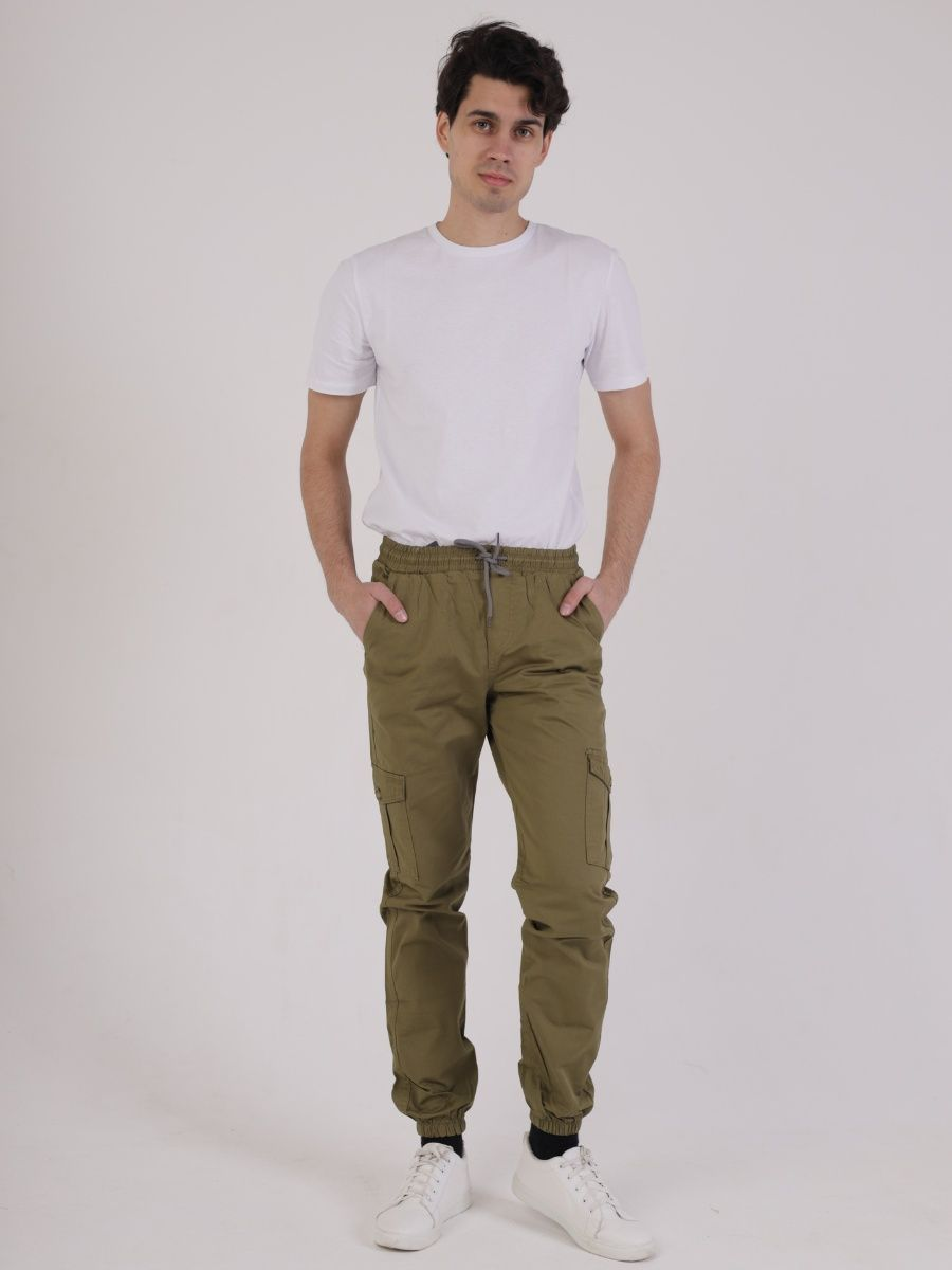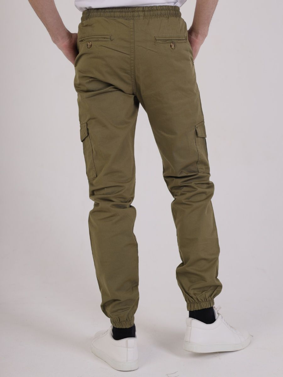 Брюки джоггеры мужские представлены в цвете олива. Джоггеры удачная модель объединившая спортивный стиль с городским. Штаны стильно смотрятся и хорошо сочетаются с футболками, куртками, рубашками. Отлично вписываются у каждого мужчины, женщины, подростка в гардеробе. Материал джоггеров состоит из 97% хлопка, 3% полиэстер. Для различных аксессуаров предусмотрено 6 карманов: 2 прорезных, 2 накладных на бедрах, 2 накладных задних кармана. Все карманы глубокие и функциональные и ими удобно пользоваться. Отличительная черта этих спортивных штанов является резинка на талии, а также манжеты на щиколотках в виде резинки. Благодаря резинкам при необходимости брюки можно легко поднять. Брюки удобно носить с высокими берцами, кроссовками, мокасинами. Коллекцию карго джогерров весна-лето можно увидеть не только на стадионах и в спорт залах, но и на улицах и даже в офисах.