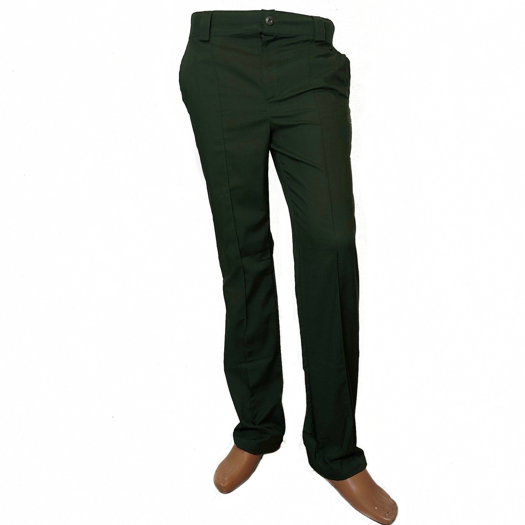 Форменные брюки классические имеют простроченную переднюю стрелку. Штаны оснащены 2 боковыми кармашками и 1 задним. На поясе - шлевки под ремень.