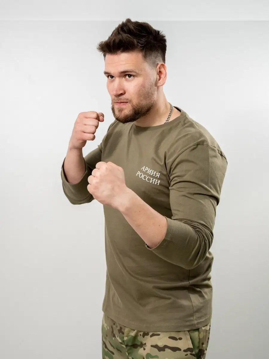Футболка с длинным рукавом №502 Армия России, хаки - интернет магазин Полигон