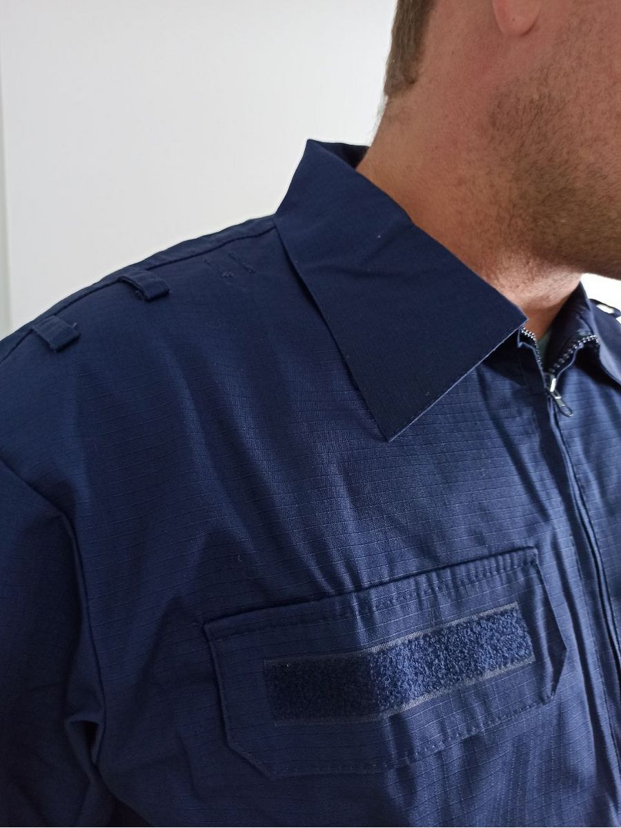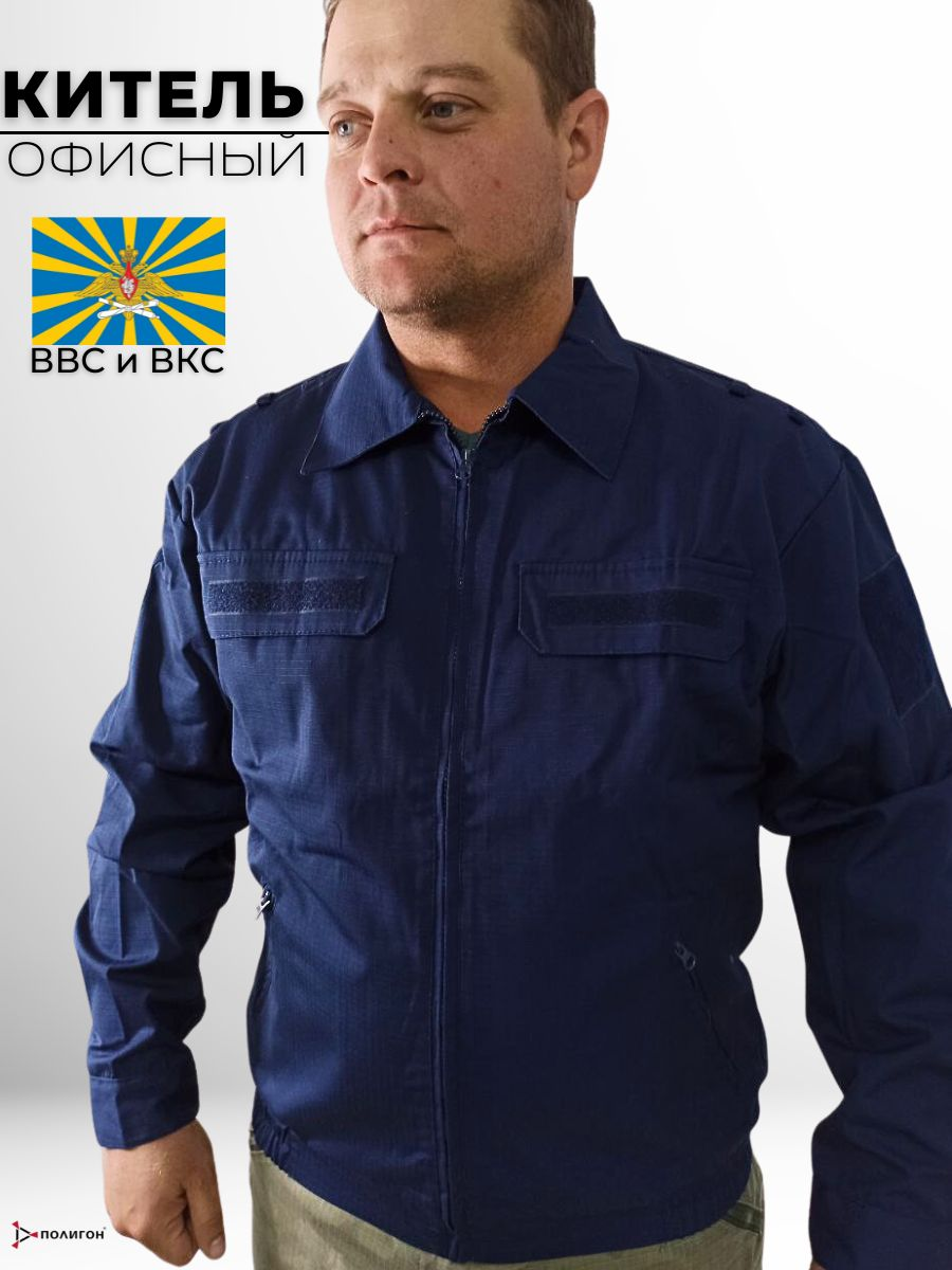 Китель офисного костюма военнослужащих ВВС и ВКС. Застегивается на молнию, имеет рубашечный отложной воротник, плотные манжеты, которые регулируются липучками. Два нагрудных кармана на липучках, а также врезные карманы по бокам на молниях. Рукава усилены на локтях. Пояс кителя утянут широкой резинкой. На кителе, согласно требованиям устава, расположены крепления для шевронов и погонов. Изготовленный из специализированной армированной ткани, китель хорошо держит форму, устойчив к сминанию, деформации, загрязнению и хорошо пропускает воздух. Легко стирается, быстро сохнет.