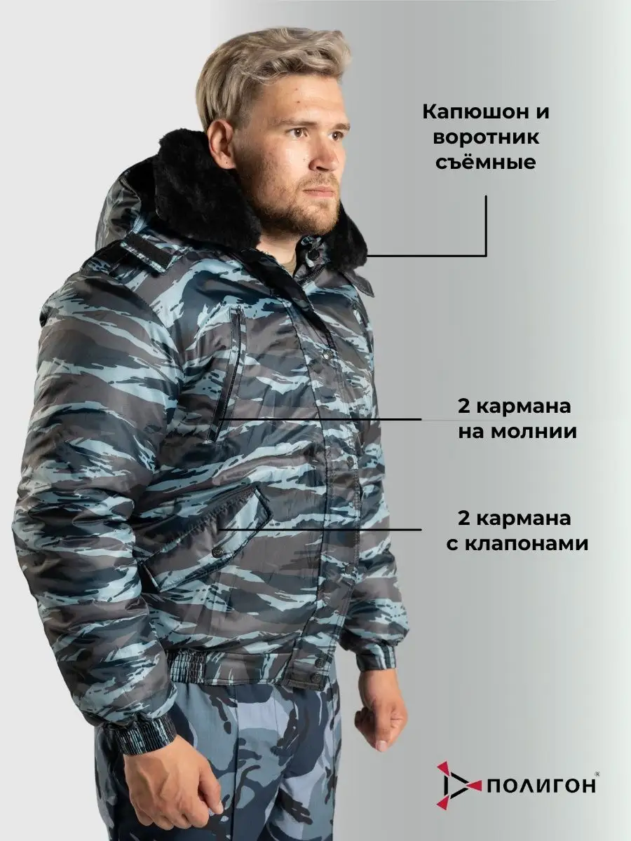 Куртка зимняя камуфлированная, укороченная, на поясе с эластичной тесьмой. Имеются отстегивающийся капюшон и съемный воротник из искусственного меха. Ветрозащитный клапан прикрывает центральную застежку на тракторной молнии, На куртке имеются два верхних прорезных кармана на молнии и два нижними кармана с клапанами. Рукав втачной, Стянут эластичной тесьмой по низу. Куртка «Норд» расцветки «Серый камыш» утеплена двумя слоями синтепона.
