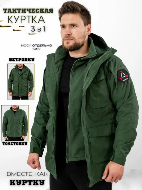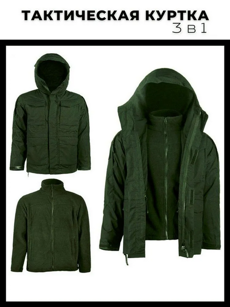 В куртке 3в1 комфортно находиться в любых погодных условиях, будь то ветер или повышенная влажность. Благодаря особенностям материалов внутри создается комфортный микроклимат. Это значит, что в ней не будет жарко, так как ткань пропускает избыток тепла от тела.Прочные молнии и замки. Имеется множество карманов разных размеров, в том числе внутренние. Также предусмотрены специальные места липучки для шевронов, патчей или нашивок. Манжеты на рукавах и капюшон регулируются по размеру.Куртка подойдет как для высоких, так и для не высоких людей.