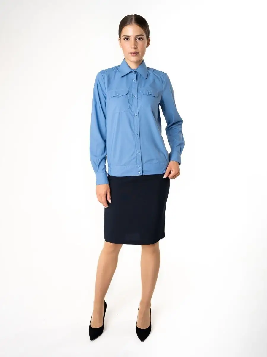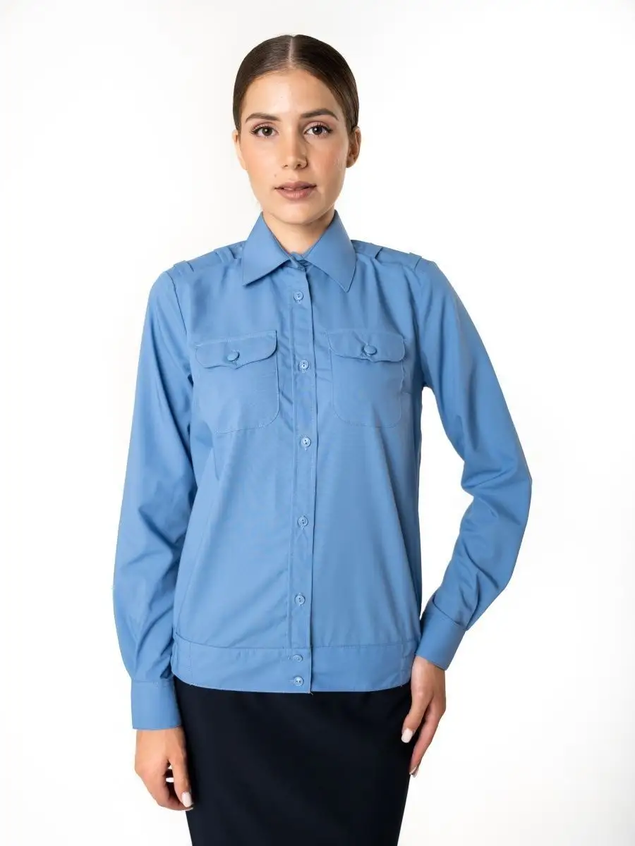 Рубашка Офицер ФСБ/ПС ФСБ, цвет голубой, женская, длинный рукав - интернет магазин Полигон