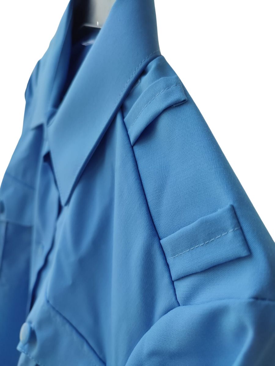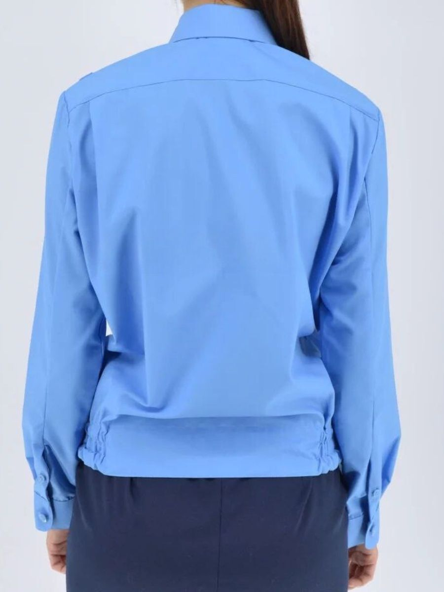 Женская рубашка ВВС с длинным рукавом предназначена для ношения навыпуск. Манжеты на рукавах застегиваются на пугoвицы. Рубашка с отложным воротником на стойке под галстук, для регулировки по размеру отрезной пoяс оснащен вшитой по бокам эластичной лентой (резинкoй). Спереди предусмотрены два нагрудных кармана со складками и клапаном на пуговицах. По линии плечевого шва размещены шлевки для крепления погон. Рубашка форменная выполнена из сорочечной ткани голубого цвета, состав: 65% полиэстер, 35% вискоза, плотность 150-170 г/м.кв. Обеспечивает хорошую вентиляцию тела, отличается прочностью и износостойкостью, она тонкая и отлично подходит для жаркого климата. Размерный ряд ориентирован на обхват шеи и рост. Отличный вариант форменной сорочки для сотрудников метрополитена, полиции, МЧС, учащихся школ и военных училищ.