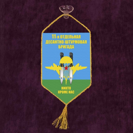Вымпел автомобильный на присоске, 11-я ОДШБ ВДВ, голубой, желтый, зеленый 15х10 см