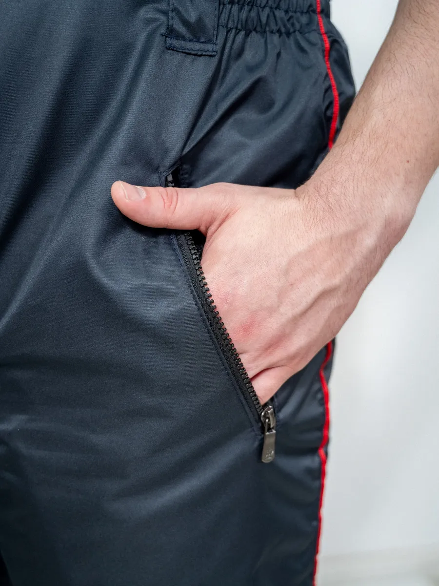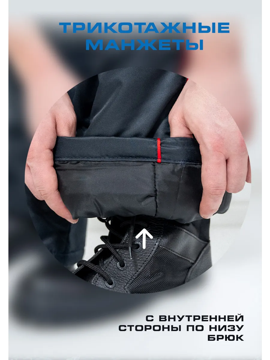 С внутренней стороны по низу брюк: трикотажные манжеты.