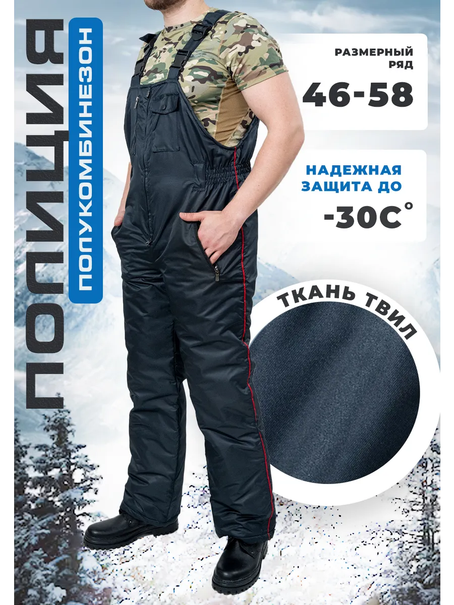 Зимний полукомбинезон «Полиция» (твил/файбертек) имеет следующее описание: