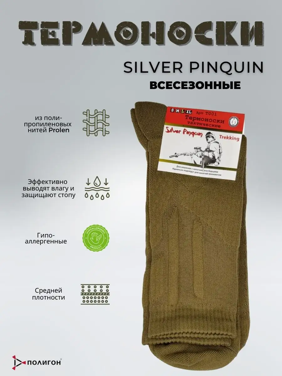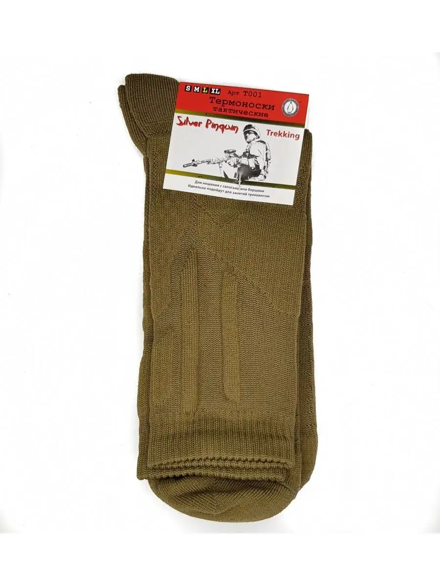 Термоноски треккинговые Т001 SILVER PINQUIN, оливковый - интернет магазин Полигон